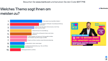 19.03.2023 Wahlprogramm: Die 10 besten Ideen für Henstedt-Ulzburg Die besten Ideen für Henstedt-Ulzburg Mehr dazu